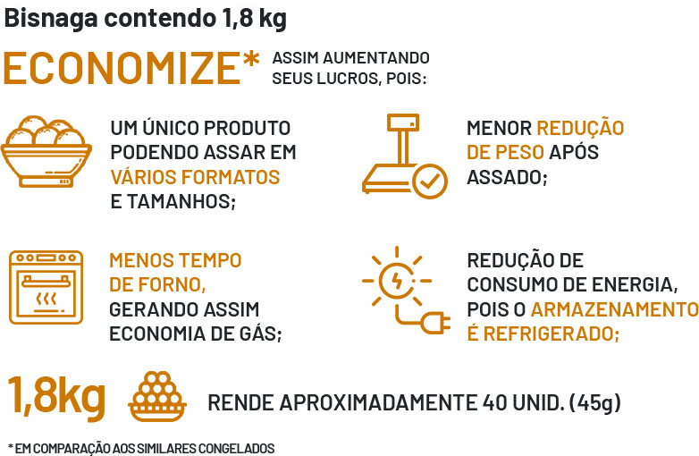 Nosso pão de queijo premium é indispensável para o seu negócio, a bisnaga foi projetada visando a economia e aumento de lucros do estabelecimento. Com a qualidade e sabor padrão Alimentos 10!